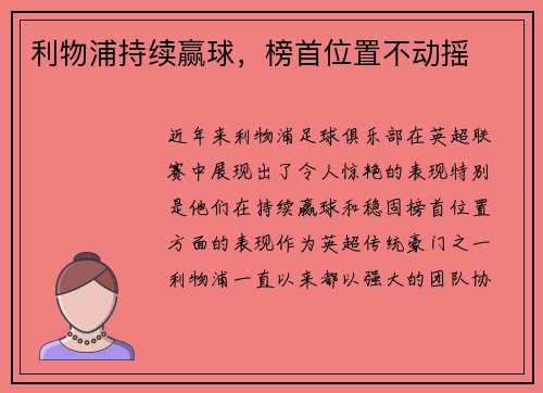 随着赛季的推进,利物浦的战术体系逐渐完善,球员们的执行力也在不断提升。尤其是在防守端,利物浦通过不断的调整,使得后防线更加稳固,减少了不必要的失误。这一战术调整的成功为球队稳步回升提供了重要保障。